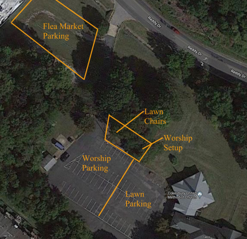 Please bring your lawn chairs for the Lawn seating. Those bringing lawn chairs please park your car closer to the church, or in the Flea Market parking area, to allow those who remain in their cars to park closer to the worship service area.